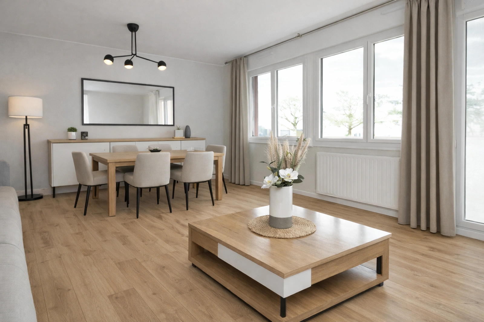 L'appartement développe une surface totale de 95 m2 au sein d'un immeuble construit en 1980. L'organisation intérieure dessert six pièces distinctes dont 4 chambres. Séjour de 24 m2 avec une hauteur sous plafond de 2,80 m. L'ensemble des ouvertures de l'appartement est orienté ouest, apportant une luminosité naturelle entre 10h et 20h. Cuisine fermée de 8,2 m2, entièrement équipée. Configuration indépendante permettant de séparer clairement l'espace repas et le séjour. Quatre chambres réparties comme suit : 11 m2, 8,7 m2, 8,5 m2, 8,5 m2 Ces surfaces permettent une utilisation flexible : chambres, bureau ou pièce d'appoint. Balcon de 5 m2 exposé ouest, équipé d'un store banne, accessible depuis la pièce de vie. Place de parking privative située à l'intérieur de la résidence sécurisée. Sols en parquet et carrelage, fenêtres double vitrage phonique, radiateurs récents. L'immeuble est implanté en retrait de la route, ce qui limite les nuisances directes de circulation. La résidence est sécurisée et bien entretenue, avec une cour intérieure arborée qui crée un environnement calme pour les enfants. Le double vitrage phonique contribue également à atténuer les bruits extérieurs. L'orientation ouest sur toutes les fenêtres assure une lumière régulière en seconde partie de journée. Appartement idéalement situé :